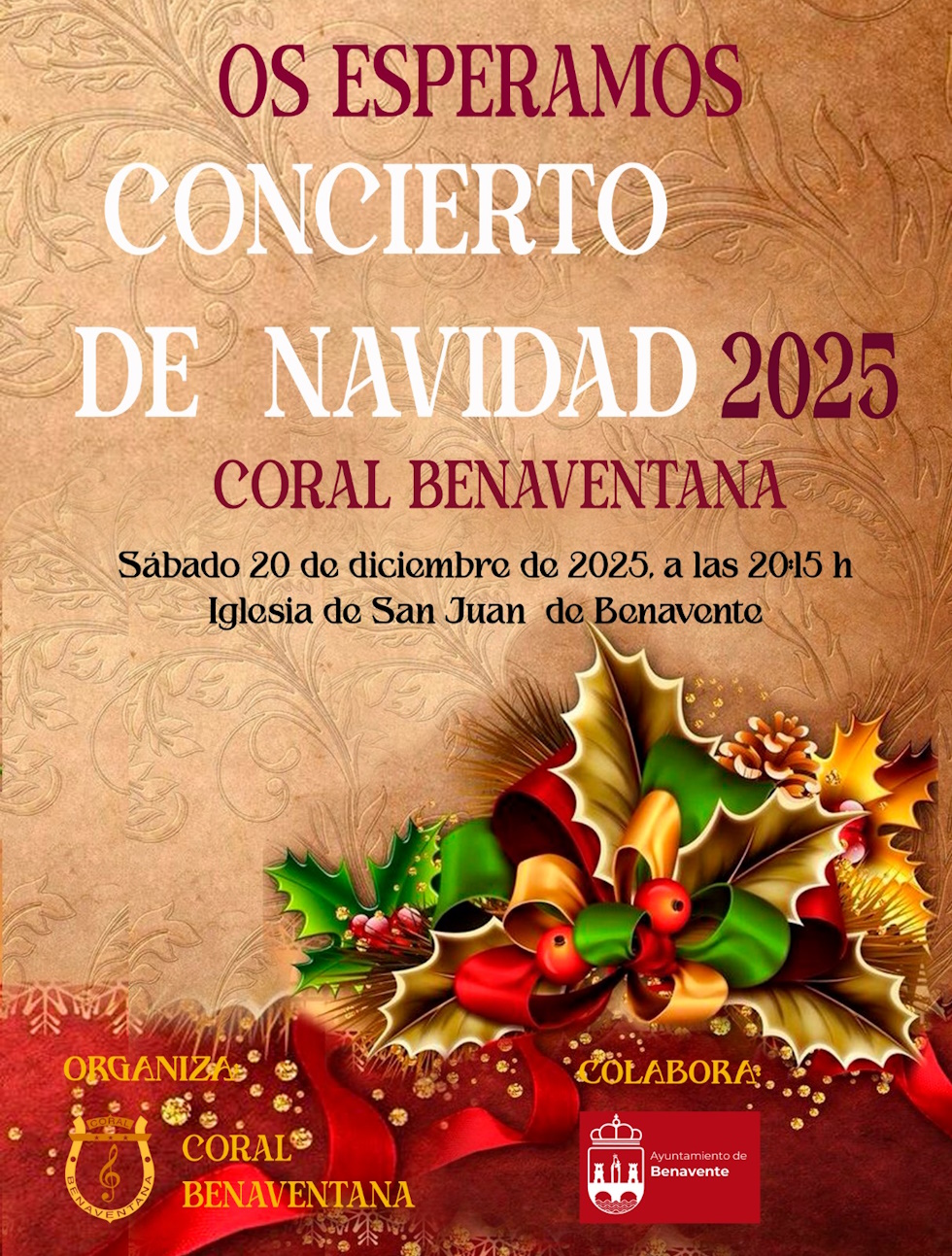 La Coral Benaventana celebrará su Concierto de Navidad 2025 el próximo sábado 20 de diciembre, a partir de las 20:15 horas, en la Iglesia de San Juan.